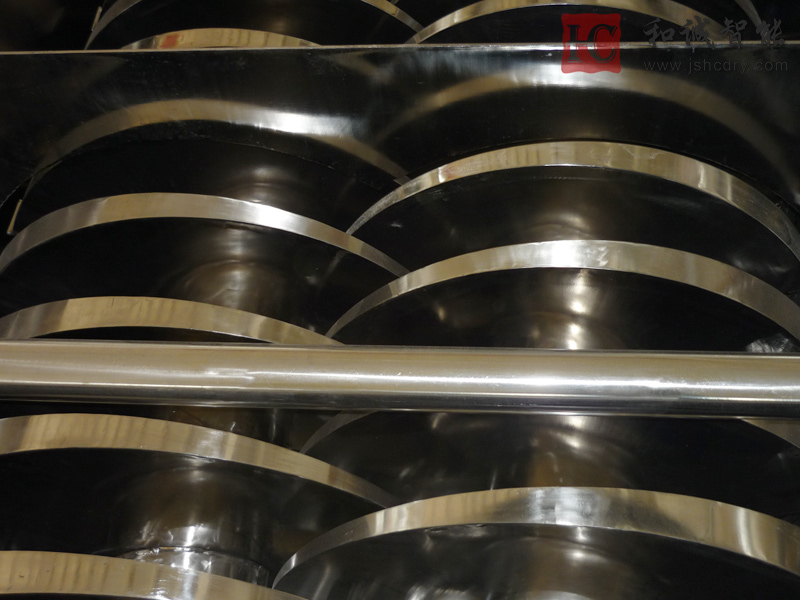桨叶干燥机以蒸汽、热水或导热油作为加热介质轴端装有热介质导入导出的旋转接头。加热介质分为两路,分别进入干燥机壳体夹套和桨叶轴内腔将器身和桨叶轴同时加热,以传导加热的方式对湿物料进行加热干燥,被干燥的湿物料由螺旋送料机定量地连续送入干燥机的加料口,湿物料进入器身后,通过桨叶的转动使污泥翻转、搅拌,不断更新加热介面,与器身和桨叶接触,被充分加热,使污泥所含的表面水分蒸发。同时湿物料随桨叶轴的旋转成螺旋轨迹向出料口方向输送,在输送中继续搅拌,使湿物料中渗出的水分继续蒸发,zui后干燥均匀的合格产品由出料口排出。