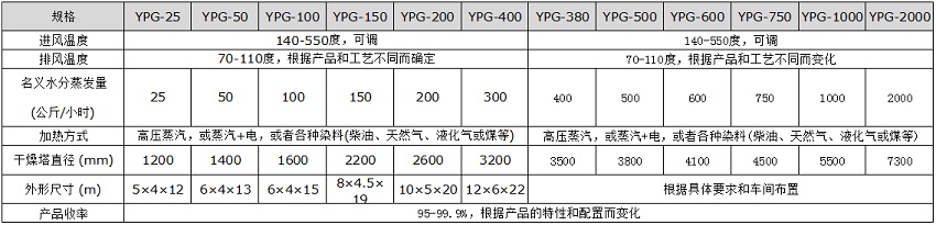 (1) 名义水分蒸发量是按照进风温度350度,排风温度85-90度计算的;
