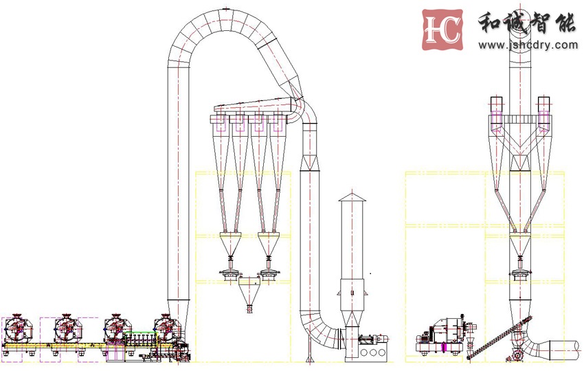 (2)擅于处理热敏性物料,料、风接触时间短,主机底部属于高温区,该区域气速高并迅速将物料带走,避免了物料焦化变色的可能;
