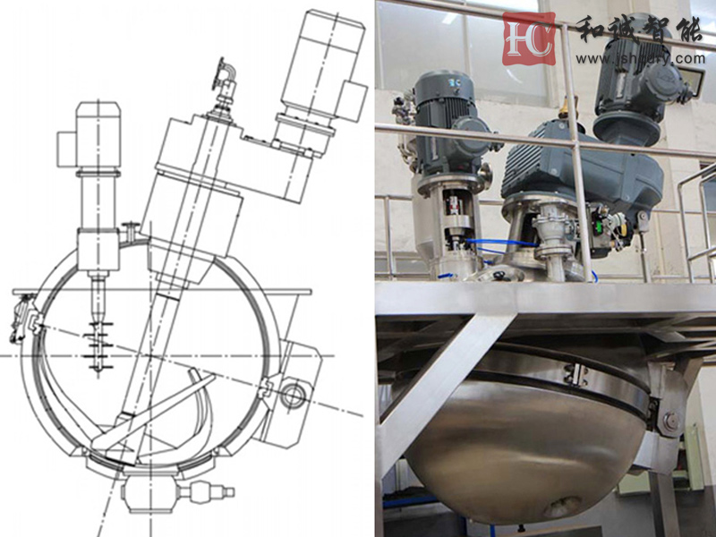 (2) 新型中搅拌桨、破碎刀都采用可拆卸形式,同样方便清洗和维修;三叶搅拌混合效果佳;容积大,效率高;混合均匀,没有死角;高速粉碎,减少结块;