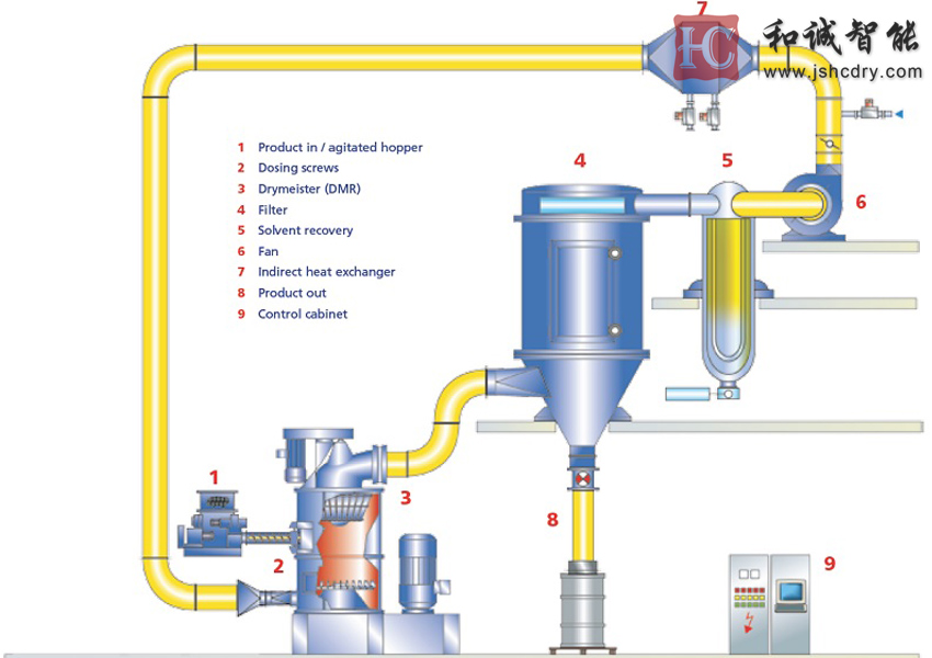 氮气循环闪蒸干燥机是江苏和诚在借鉴国外先进技术基础上研发的一种新型密闭式干燥机。闭路干燥系统是在密闭的环境下工作,干燥介质为惰性气体提高了该设备的安全系数,实现对制药、生化、化工、生物等技术领域含有机溶媒、溶剂物料的干燥生产与溶媒、溶剂的回收,具备安全生产、高效、低耗节能减排的实用性。
