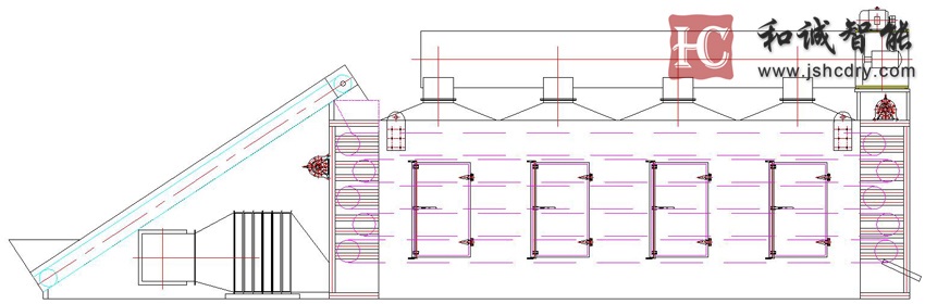 (3) 摊料面积由25m2~120m2, 七种大小不等的机型,可满足多种物料和不同生产规模的需要。