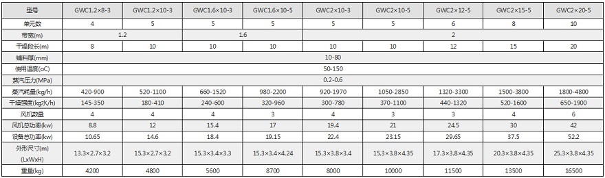 GWC型多层穿流带式干燥机广泛应用于食品、农副产品、脱水蔬菜、中药材、水产品、土特产品、饲料及化工原料等行业之片状、条状、块状和颗粒状物料的脱水干燥作业。