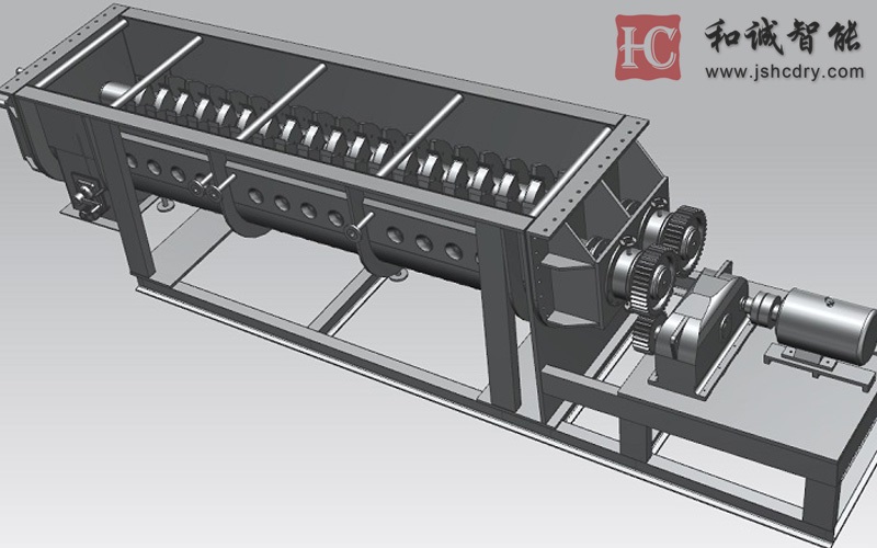(2) 热量利用率高,桨叶式污泥干燥机采用传导加热方式进行加热,没有热空气带走热量,热量利用率可达90%以上;