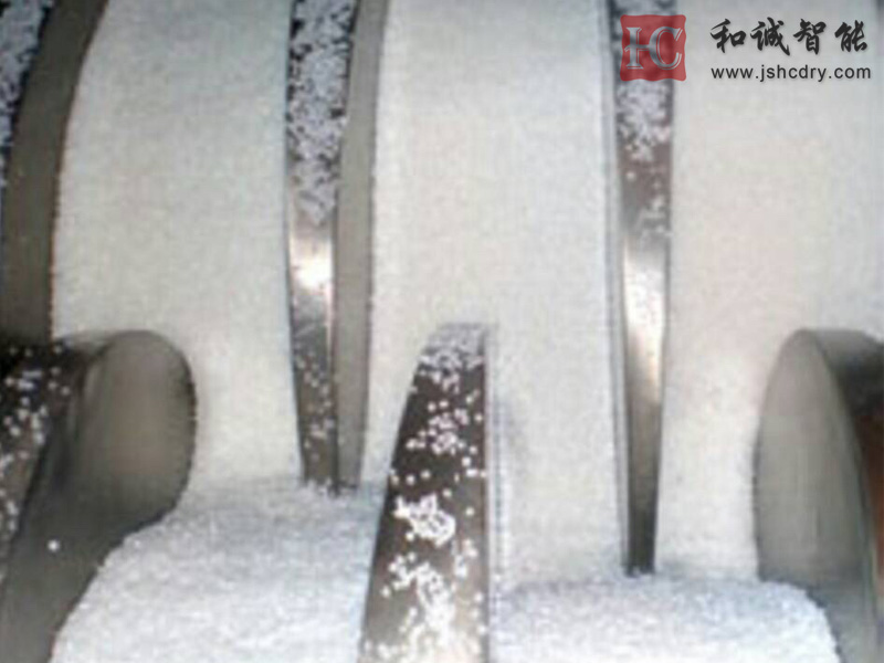 ① 经洗涤的料浆进入空心桨叶式干燥系统进行干燥处理后经物料冷却由旋转阀放料进入出料螺旋至包装系统;