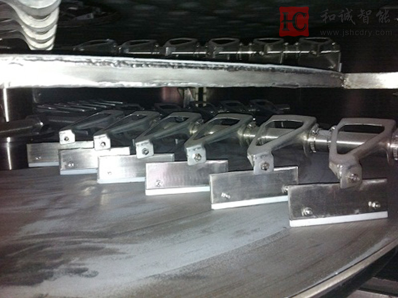 国内生产三元材料的厂家采用传统的烘箱干燥机等对流干燥系统,由于烘干方式的落后,导致电池材料类物料含水率较大,流动性一般,干燥后物料的铁离子含量超标,和诚智能研究开发了三元材料前驱体专用盘式连续干燥机大大减低了生产成本,提高了产品质量,降低了工人的劳动强度,保护了环境。